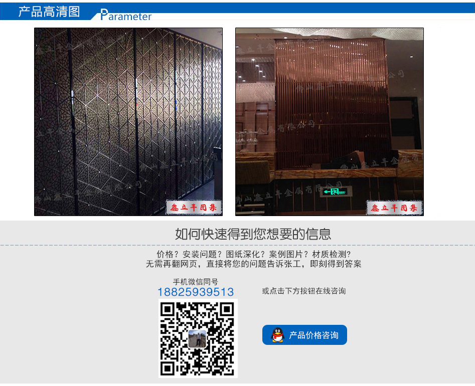 產品尺寸:根據需求定制 產品材質:201、304、316L 可選顏色:玫瑰金、鈦金、黑鈦金、香檳金、青古銅、紅古銅、咖啡金、灰色、按樣板定制 適用場所: 酒店、餐廳、會所、售樓部、商場、別墅、KTV