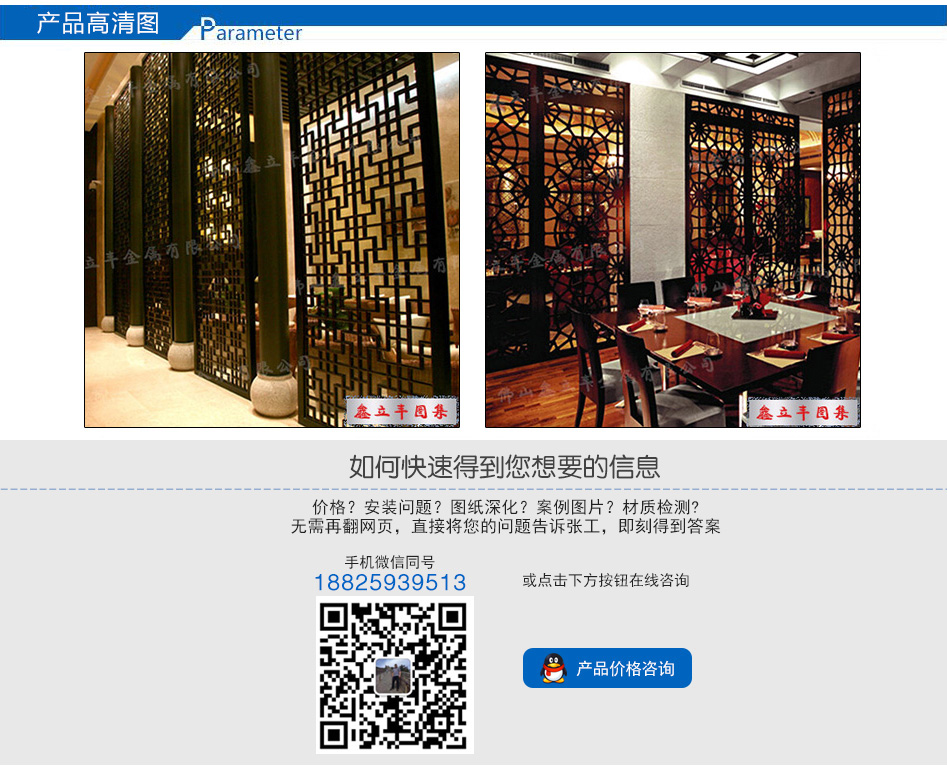 產(chǎn)品尺寸:根據(jù)需求定制 產(chǎn)品材質(zhì):201、304、316L 可選顏色:玫瑰金、鈦金、黑鈦金、香檳金、青古銅、紅古銅、咖啡金、灰色、按樣板定制 適用場所: 酒店、餐廳、會所、售樓部、商場、別墅、KTV