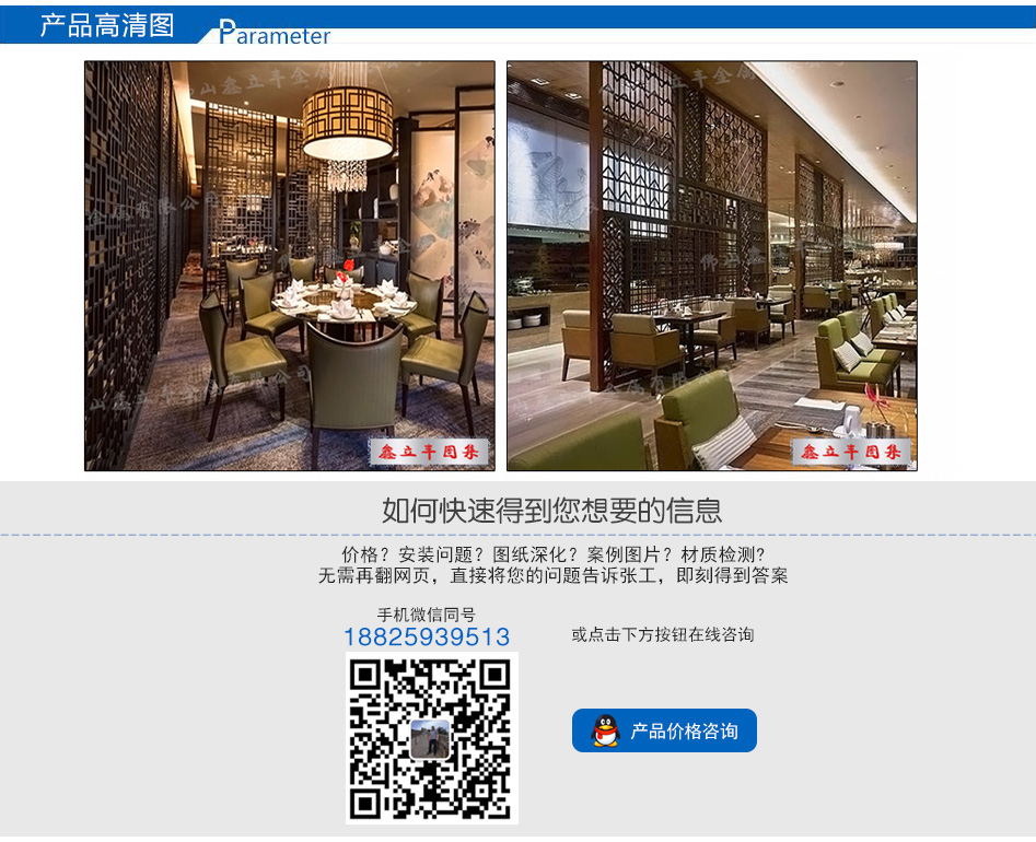 產(chǎn)品尺寸:根據(jù)需求定制 產(chǎn)品材質(zhì):201、304、316L 可選顏色:玫瑰金、鈦金、黑鈦金、香檳金、青古銅、紅古銅、咖啡金、灰色、按樣板定制 適用場所: 酒店、餐廳、會所、售樓部、商場、別墅、KTV