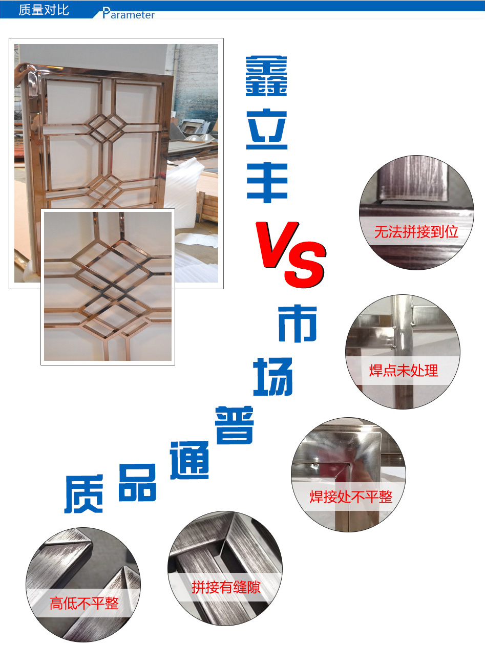 產(chǎn)品尺寸:根據(jù)需求定制 產(chǎn)品材質(zhì):201、304、316L 可選顏色:玫瑰金、鈦金、黑鈦金、香檳金、青古銅、紅古銅、咖啡金、灰色、按樣板定制 適用場(chǎng)所: 酒店、餐廳、會(huì)所、售樓部、商場(chǎng)、別墅、KTV