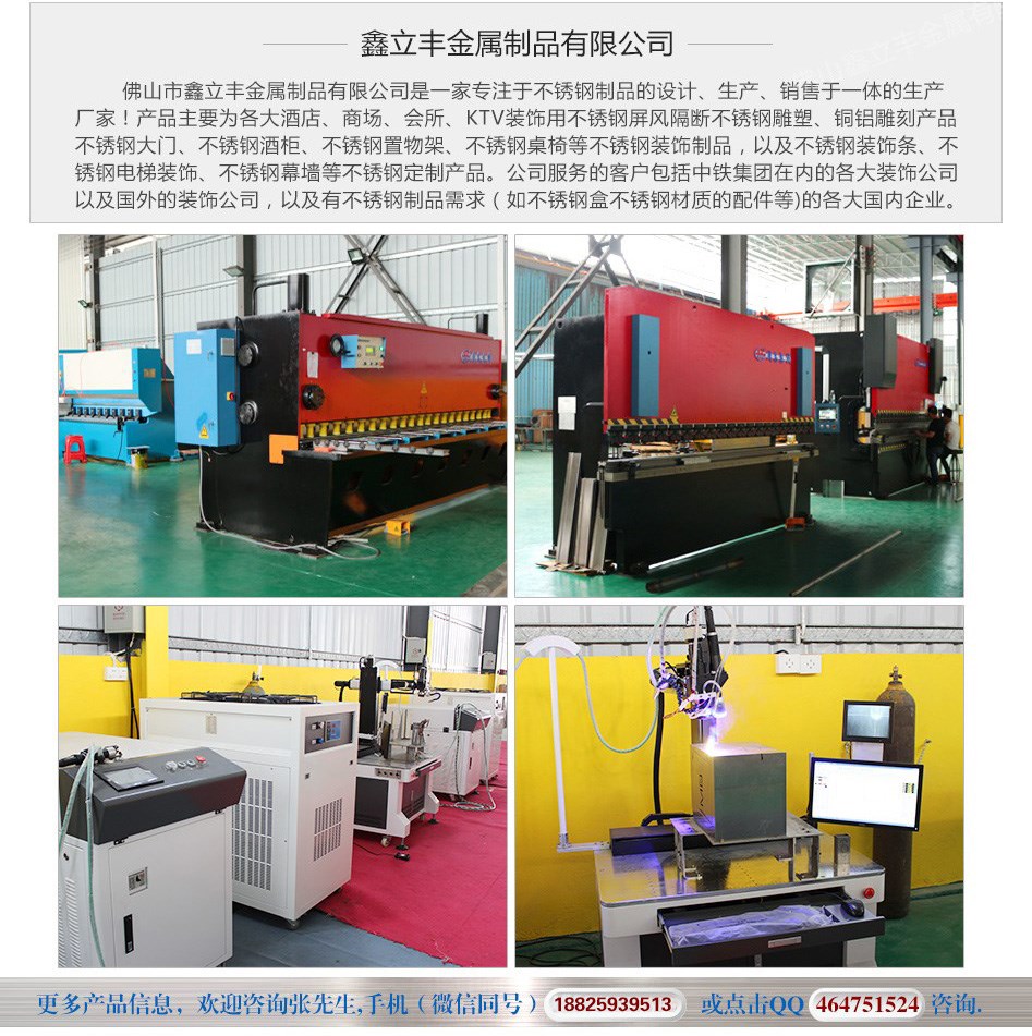 產(chǎn)品尺寸:根據(jù)需求定制 產(chǎn)品材質(zhì):201、304、316L 可選顏色:玫瑰金、鈦金、黑鈦金、香檳金、青古銅、紅古銅、咖啡金、灰色、按樣板定制 適用場(chǎng)所: 酒店、餐廳、會(huì)所、售樓部、商場(chǎng)、別墅、KTV