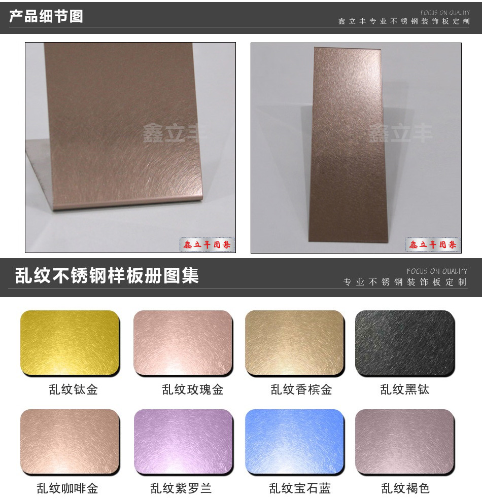 | 表面顏色 | 玫瑰金、鈦金、香檳金、黑鈦金、青古銅、紅古銅、其他定制顏色 | ||