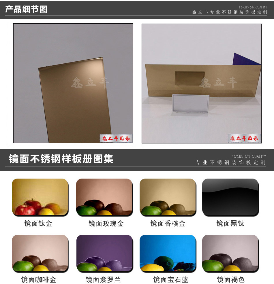 | 表面顏色 | 玫瑰金、鈦金、香檳金、黑鈦金、青古銅、紅古銅、其他定制顏色 | ||