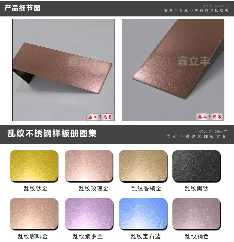 | 表面顏色 | 玫瑰金、鈦金、香檳金、黑鈦金、青古銅、紅古銅、其他定制顏色 | ||