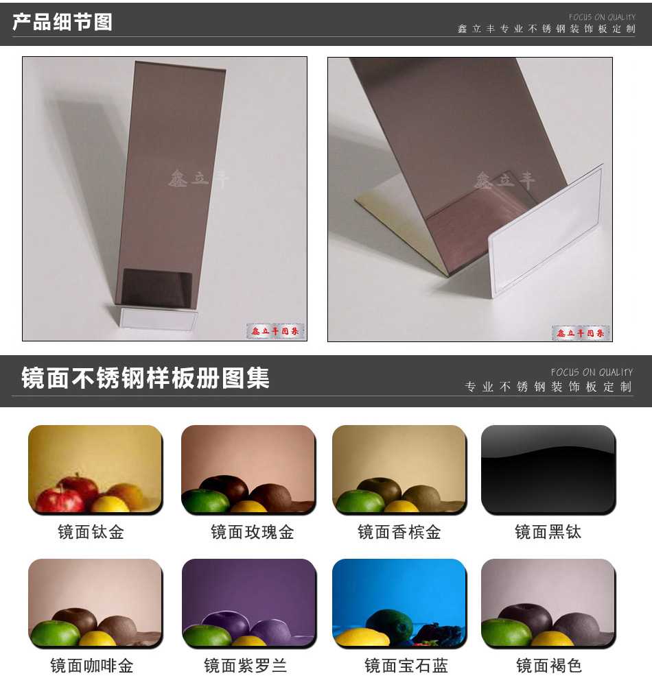 | 表面顏色 | 玫瑰金、鈦金、香檳金、黑鈦金、青古銅、紅古銅、其他定制顏色 | ||