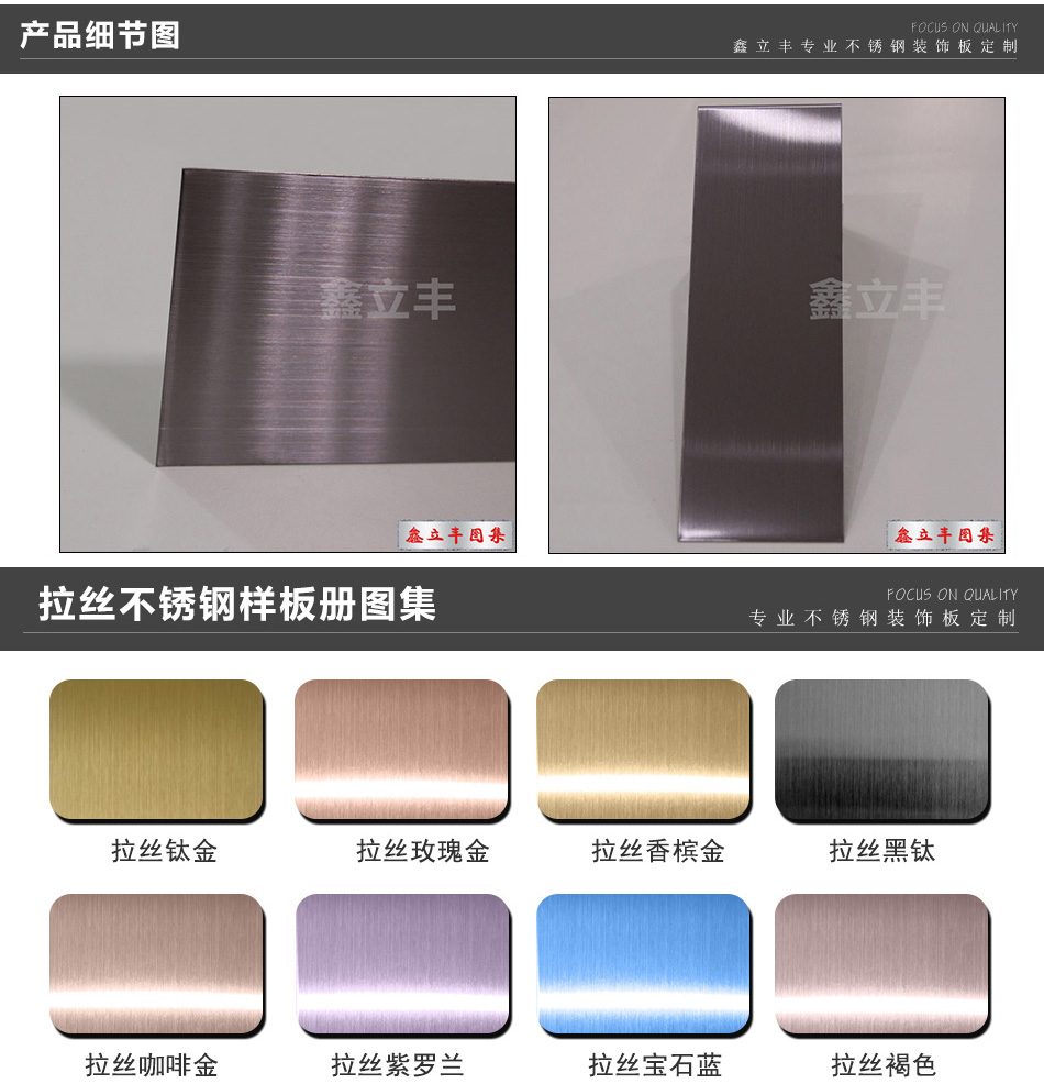 | 表面顏色 | 玫瑰金、鈦金、香檳金、黑鈦金、青古銅、紅古銅、其他定制顏色 | ||