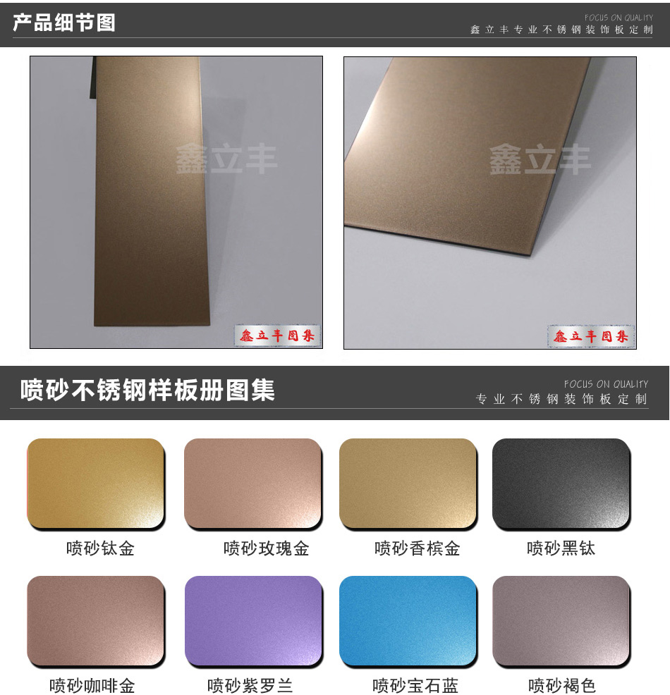 | 表面顏色 | 玫瑰金、鈦金、香檳金、黑鈦金、青古銅、紅古銅、其他定制顏色 | ||