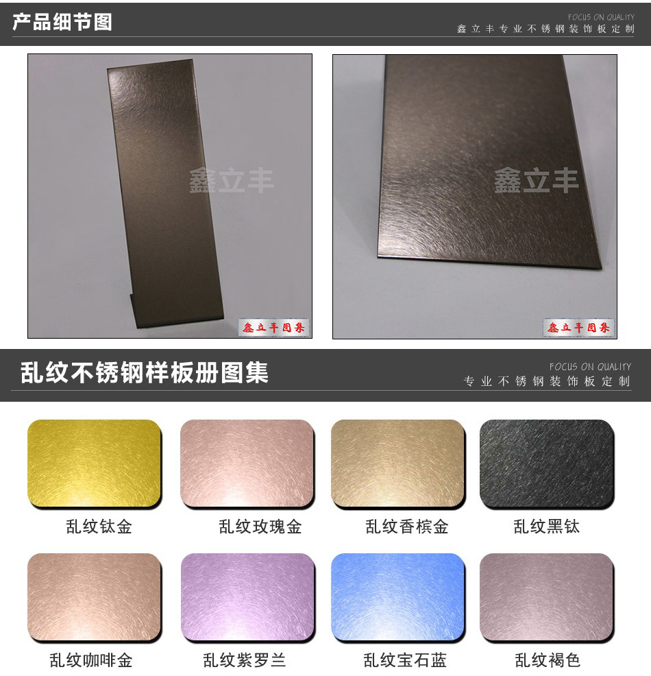| 表面顏色 | 玫瑰金、鈦金、香檳金、黑鈦金、青古銅、紅古銅、其他定制顏色 | ||