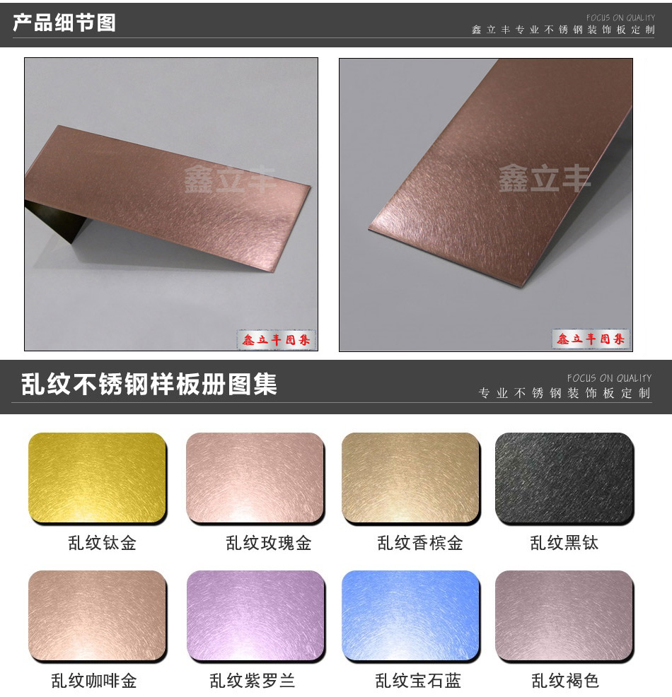 | 表面顏色 | 玫瑰金、鈦金、香檳金、黑鈦金、青古銅、紅古銅、其他定制顏色 | ||