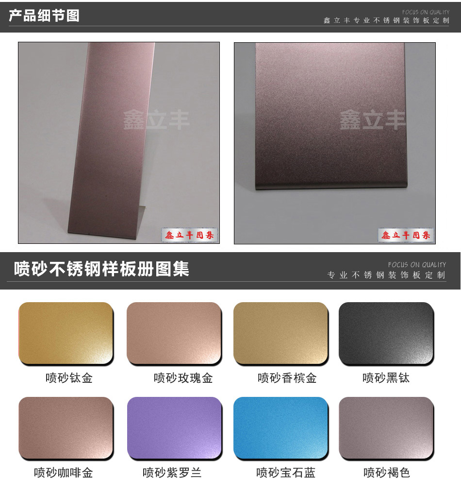 | 表面顏色 | 玫瑰金、鈦金、香檳金、黑鈦金、青古銅、紅古銅、其他定制顏色 | ||
