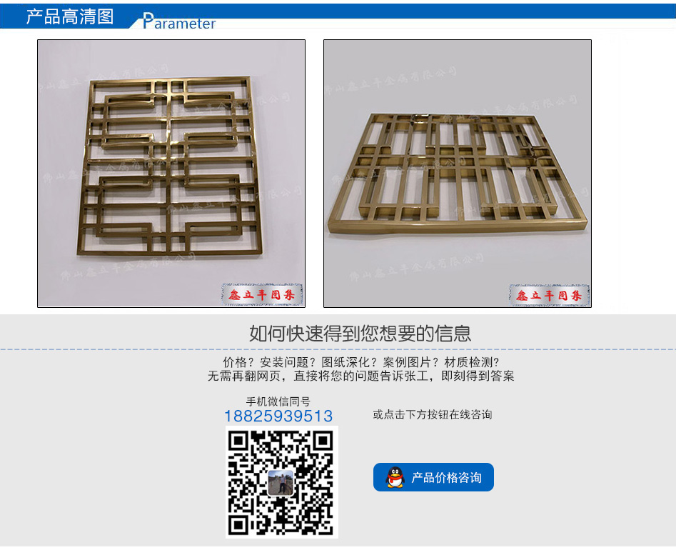 產(chǎn)品尺寸:根據(jù)需求定制 產(chǎn)品材質(zhì):201、304、316L 可選顏色:玫瑰金、鈦金、黑鈦金、香檳金、青古銅、紅古銅、咖啡金、灰色、按樣板定制 適用場所: 酒店、餐廳、會所、售樓部、商場、別墅、KTV