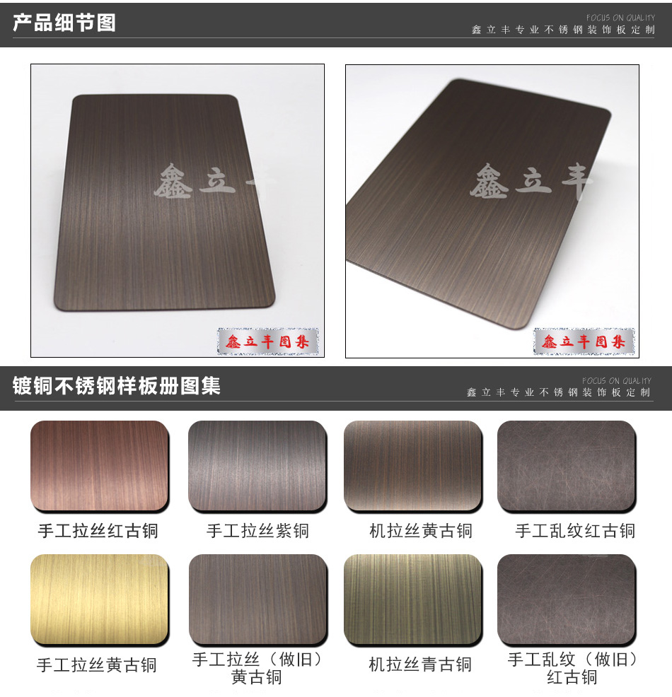 手工拉絲仿古銅做舊不銹鋼板