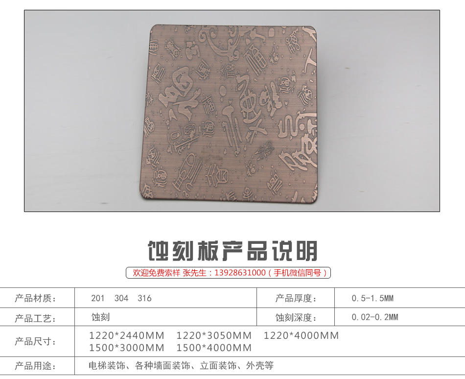 201拉絲蝕刻紅古銅發(fā)黑