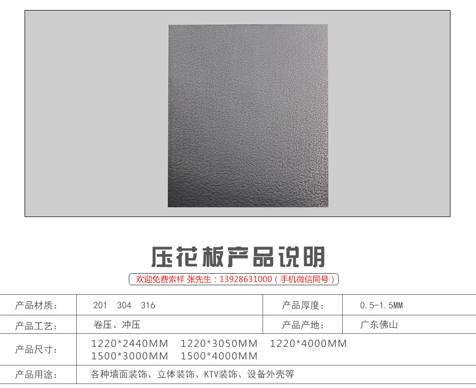 您當前位置:首頁 >> 產(chǎn)品展示 >> 不銹鋼裝飾板材 >> 按表面效果分 >> 花紋不銹鋼板